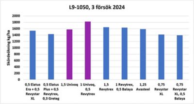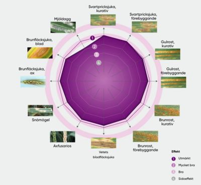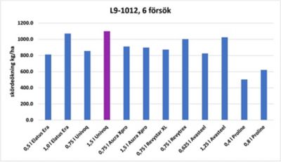 Univoq™ är en produkt för huvudbehandling och erbjuder en mycket hög kontroll av svartpricksjuka även av de stammar som har utvecklat SDHI-resistens. Univoq™ ger också god kontroll av vetets bladfläcksjuka (DTR) och rost. Detta har visats i svenska officiella försök ända sedan 2017. Efter några år med lägre svampangrepp bjöd 2024 på ett högt tryck av flertalet svampsjukdomar. Univoq™ presterade i topp i både mellersta och södra Sverige, se diagram.